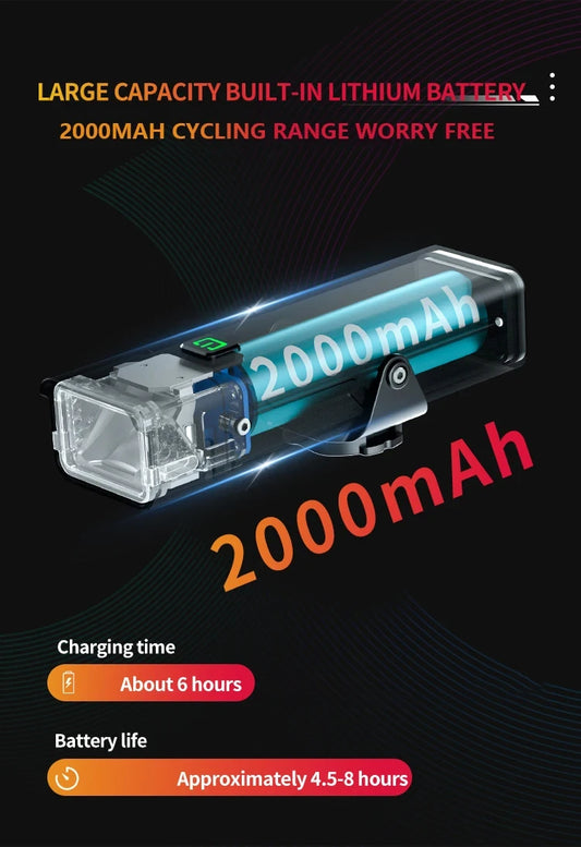 Mountain Bike Headlight TYPE-C Rechargeable Wireless Remote Control MTB Bike Front Lamp for Night Riding Cycling Accessories