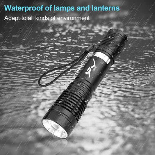 مصباح LED T6 للغوص تحت الماء مقاوم للماء ومضاد للماء وبطارية 18650 فائقة السطوع ومضاد للماء IPX8 ومزود بـ 3 أوضاع ومصباح قوي وفانوس عالي الطاقة