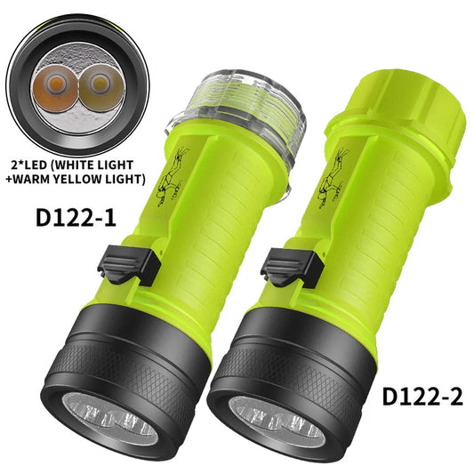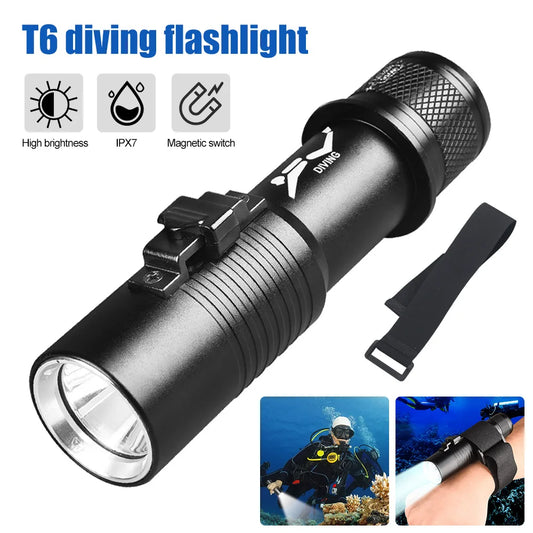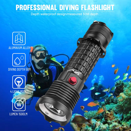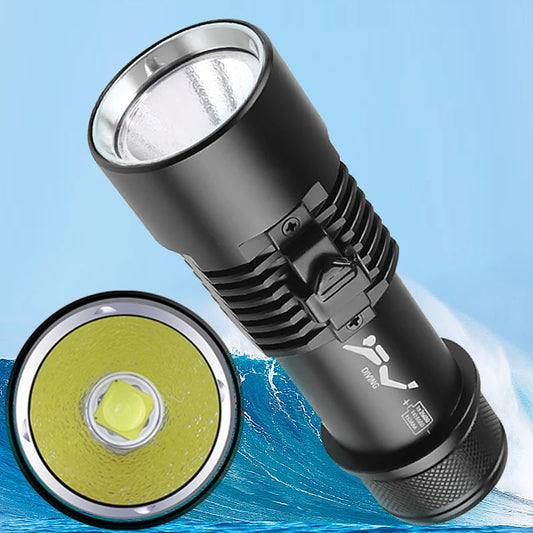 مصباح يدوي للغوص بدرجة مقاومة للماء IPX7 احترافي 200 متر تحت الماء ومصباح غوص LED ومصباح أمان للغواصات