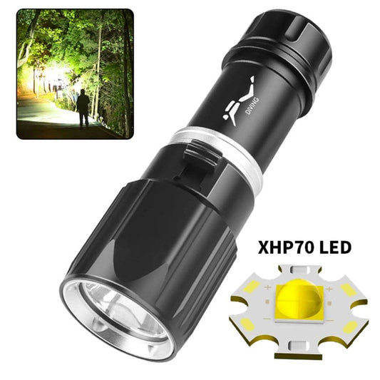 مصباح يدوي للغوص والغطس بقوة 1000 لومن IPX8 مقاوم للماء وشديد السطوع XHP 70 LED مصباح يدوي قابل لإعادة الشحن