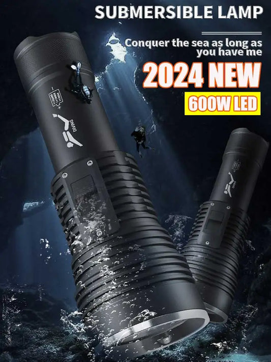 مصباح يدوي احترافي للغوص بقوة 600 وات ليزر أبيض IPX8 جديد تحت الماء 5000 متر 10000 لومن مصباح غوص IPX8 مقاوم للماء