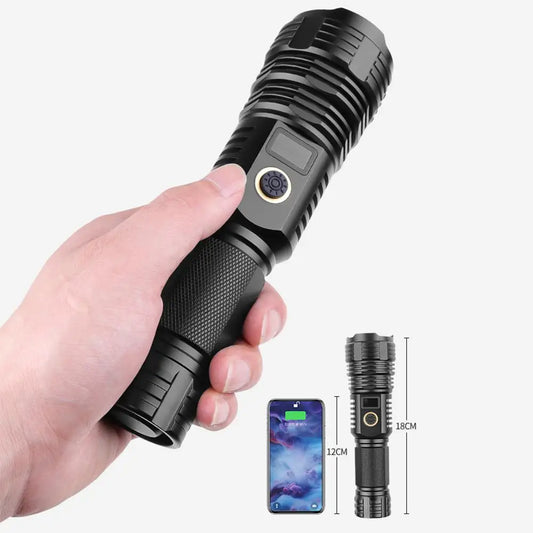 مصباح يدوي LED خارجي مقاوم للماء IP67 شاشة رقمية قوية تكبير USB Type-c مصباح عمل قابل لإعادة الشحن Xhp70