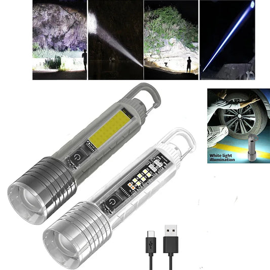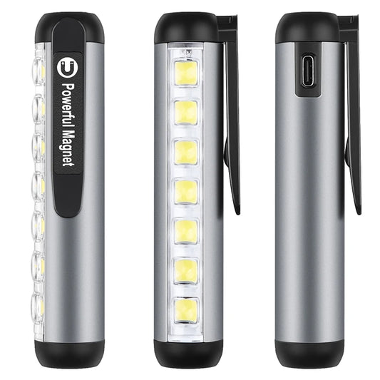 مصباح يدوي LED صغير من النوع C للشحن مع مشبك مغناطيسي متعدد الوظائف ومقاوم للماء ومصباح عمل محمول للتخييم وتحذير