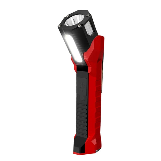 مصباح يدوي COB XPE LED قابل للطي ومحمول 18650 قابل لإعادة الشحن ومصباح عمل مغناطيسي لفحص السيارة في حالات الطوارئ ومصباح SOS أحمر