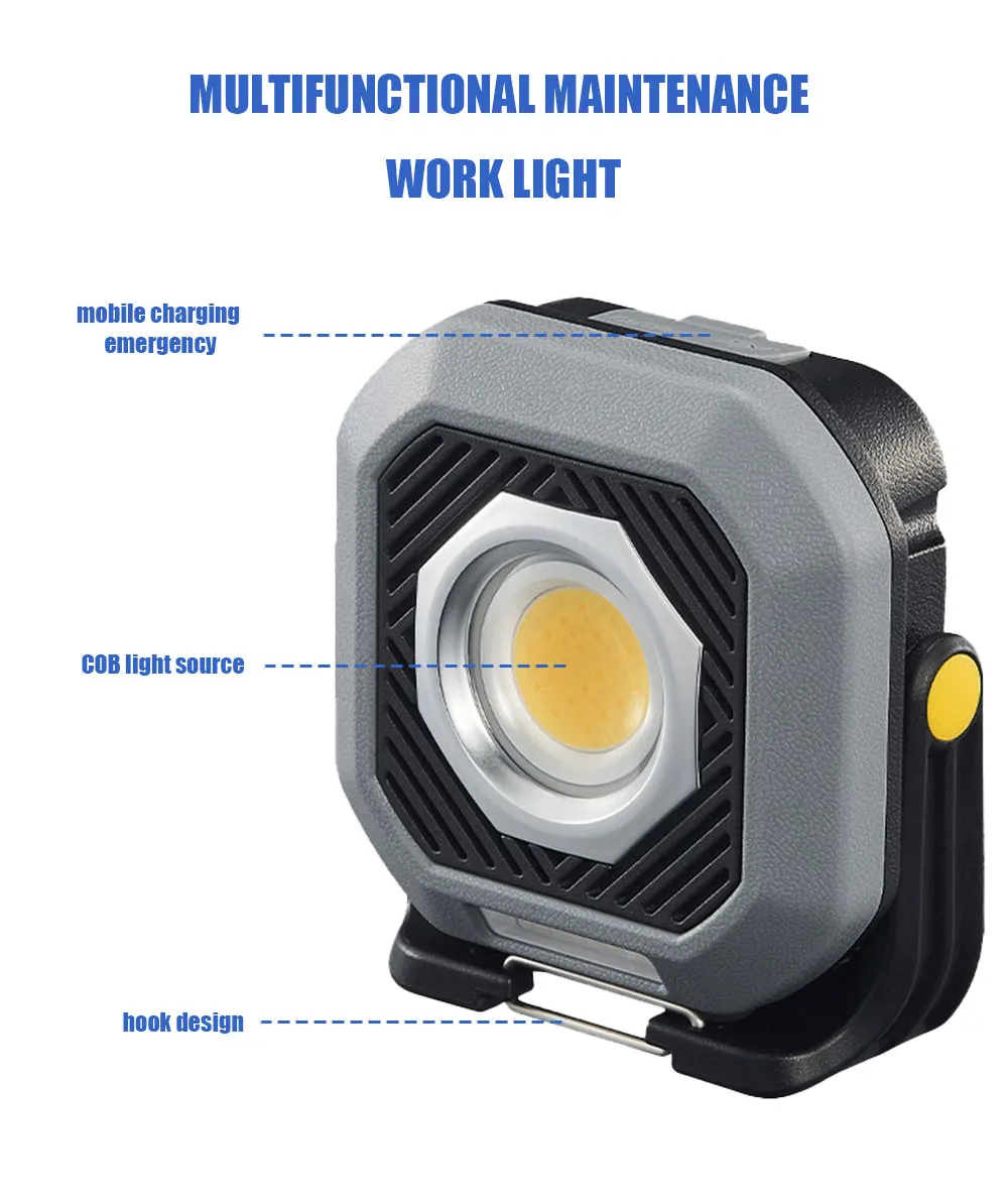Work Light LED COB Camping Lamp USB Fast Charging Lantern Magnetic Power Bank Floodlight 5 Modes Waterproof