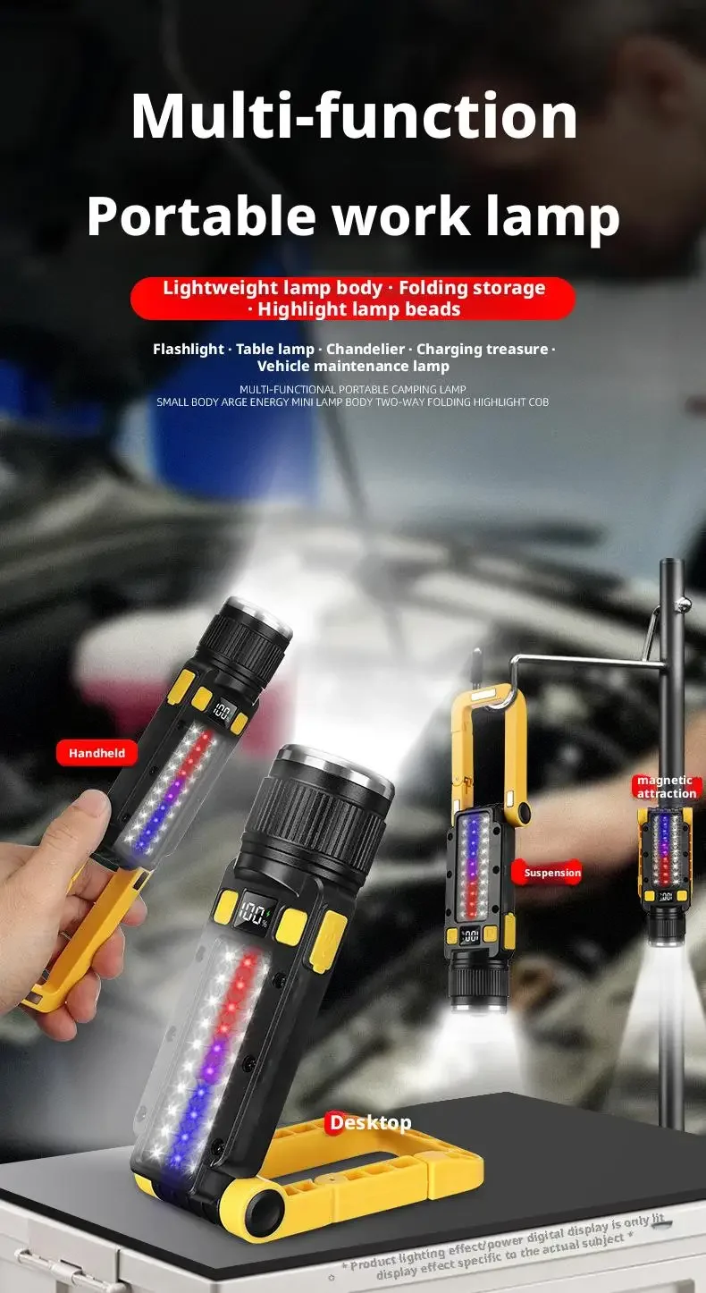 Multi-Purpose Outdoor Flashlight with Magnetic Emergency Lighting Purple Light Detection Work Light for Maintenance