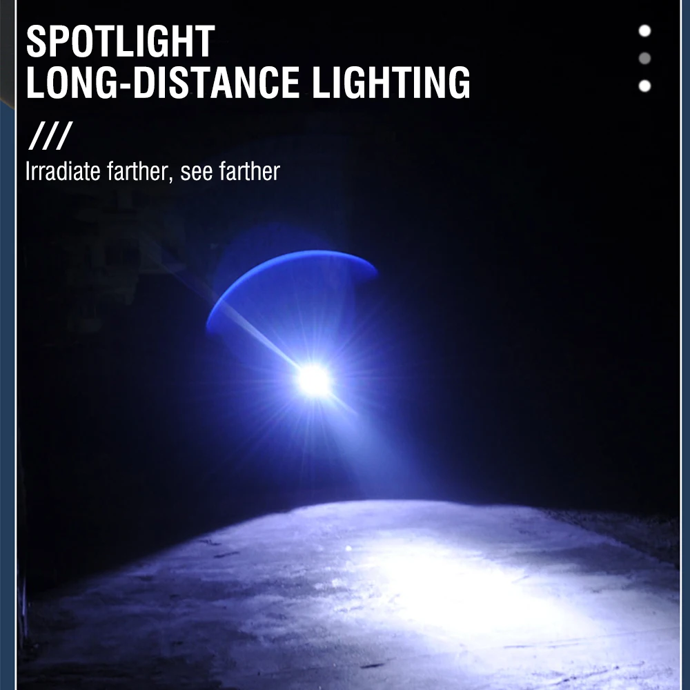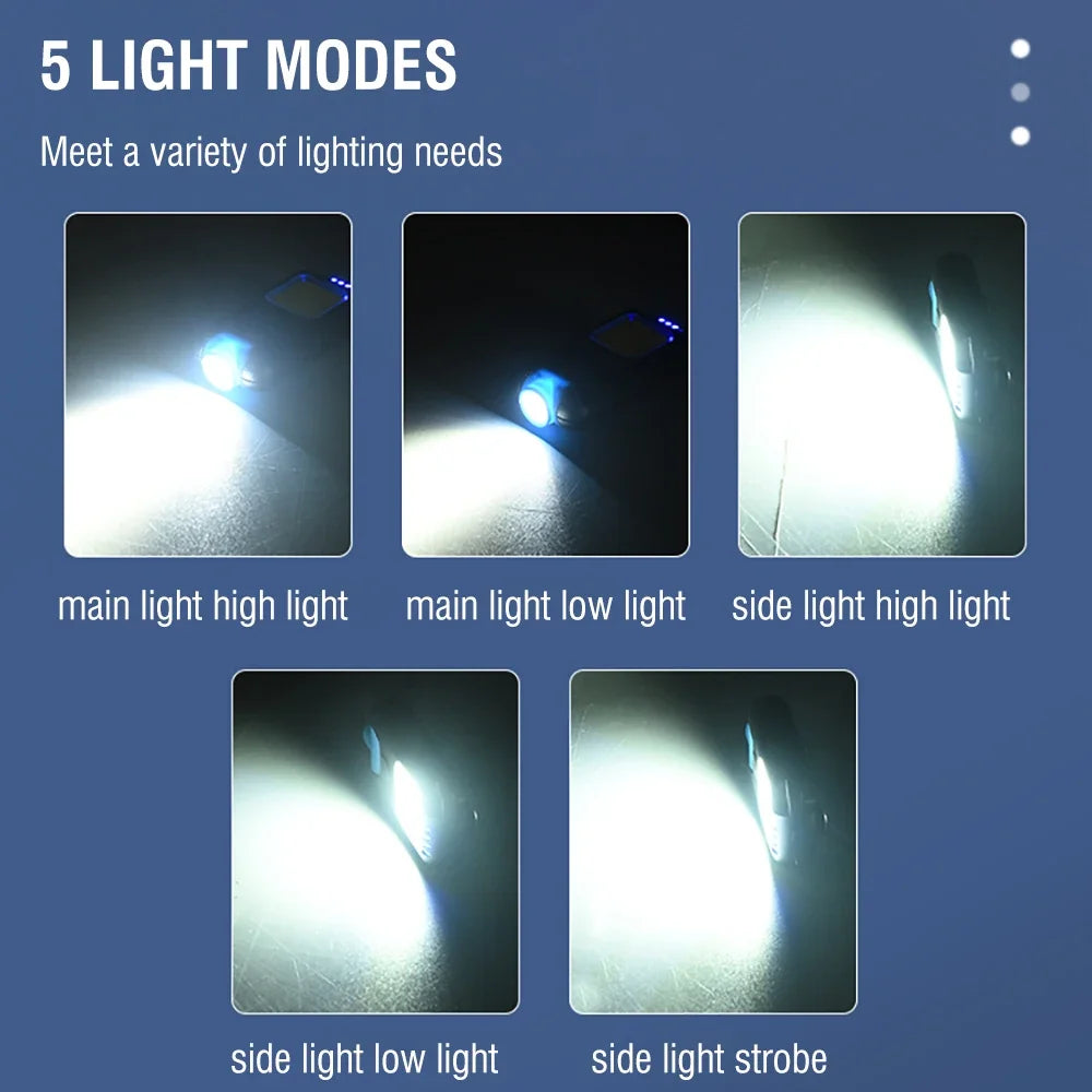 Switch Modes: LED2 gears: strong light - weak light, long press to turn on COB 3 gear: strong light - medium light-flash, long press to close