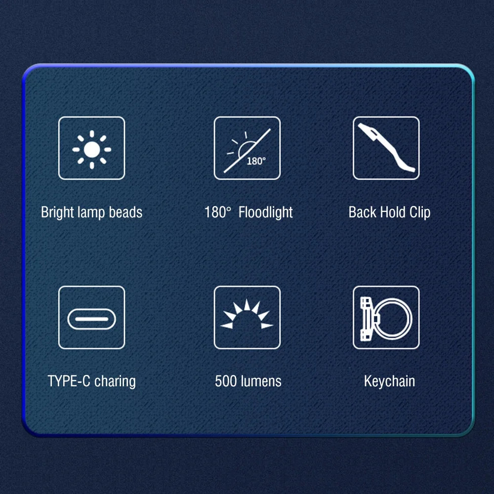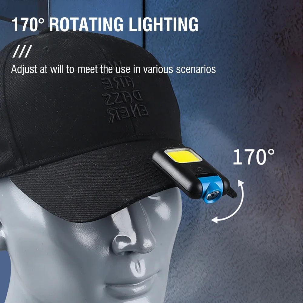 Mini EDC Keychain Flashlight TYPE-C Rechargeable Torch Portable Work Cap Light Tiki Fishing Camping Head Flashlight COB CL11