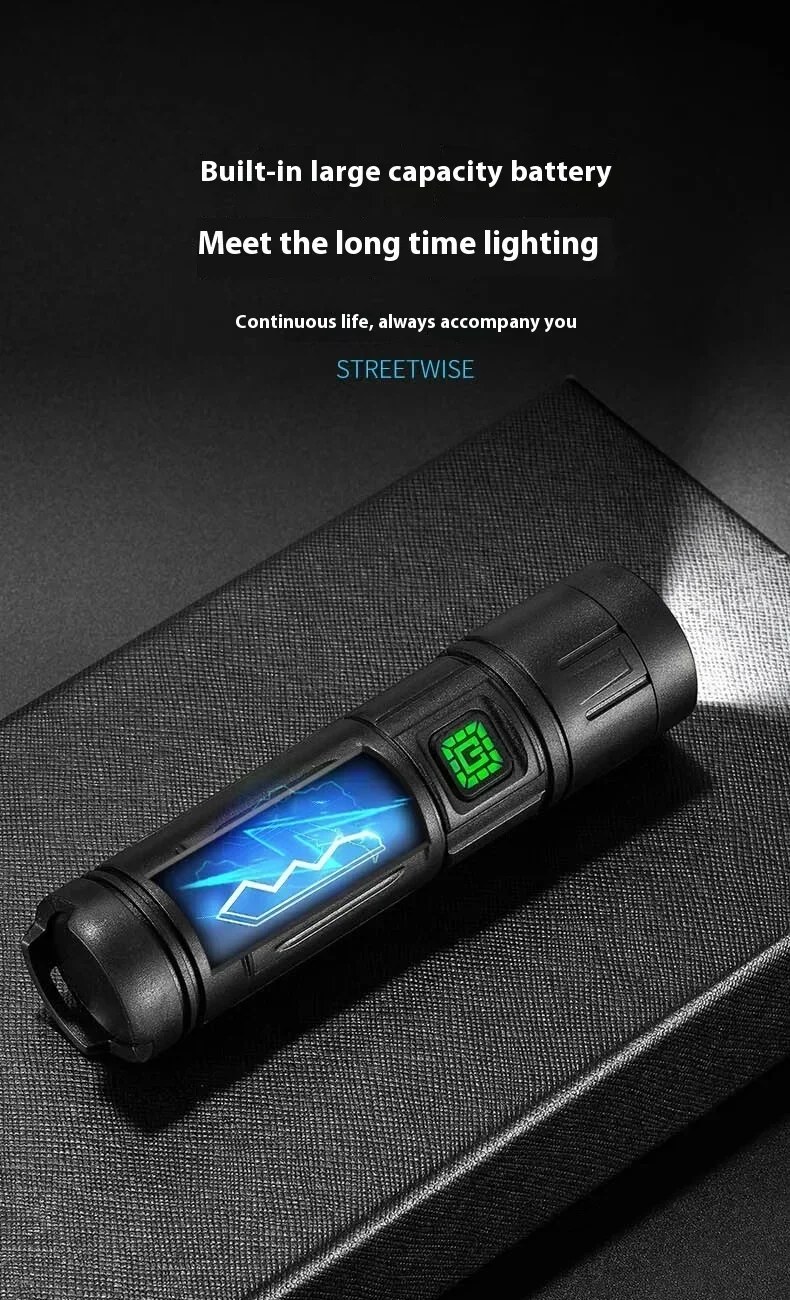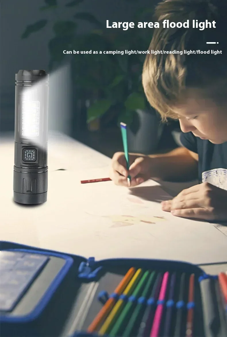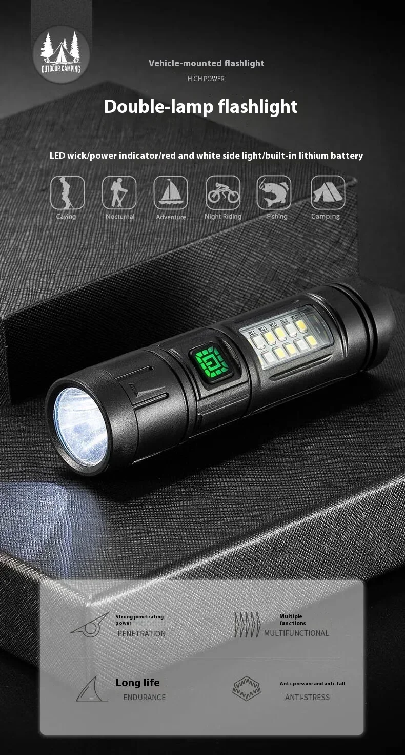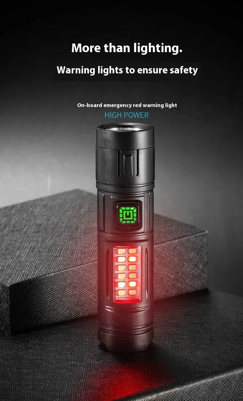 The ZHENAO CY-011 is a versatile rechargeable LED flashlight engineered for outdoor enthusiasts. Featuring a primary LED main light paired with 8 white side LEDs and 4 red accent LEDs, this compact torch delivers adaptive illumination for fishing, hunting, camping, and emergency situations. Weighing just 53g with dimensions of 12.1×3×3cm, it's highly portable without sacrificing performance. The durable ABS construction with IPX4 waterproof rating withstands challenging environments. Seven operational modes let you switch between high and low intensity settings, flashing modes, and dedicated red light functions—simply hold any mode for 5 seconds to power down. The built-in battery charges via Type-C USB, ensuring convenient recharging anywhere. Press-button operation provides intuitive control in the field.