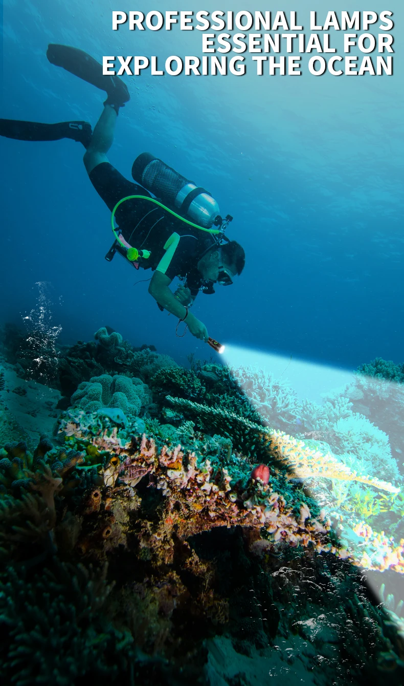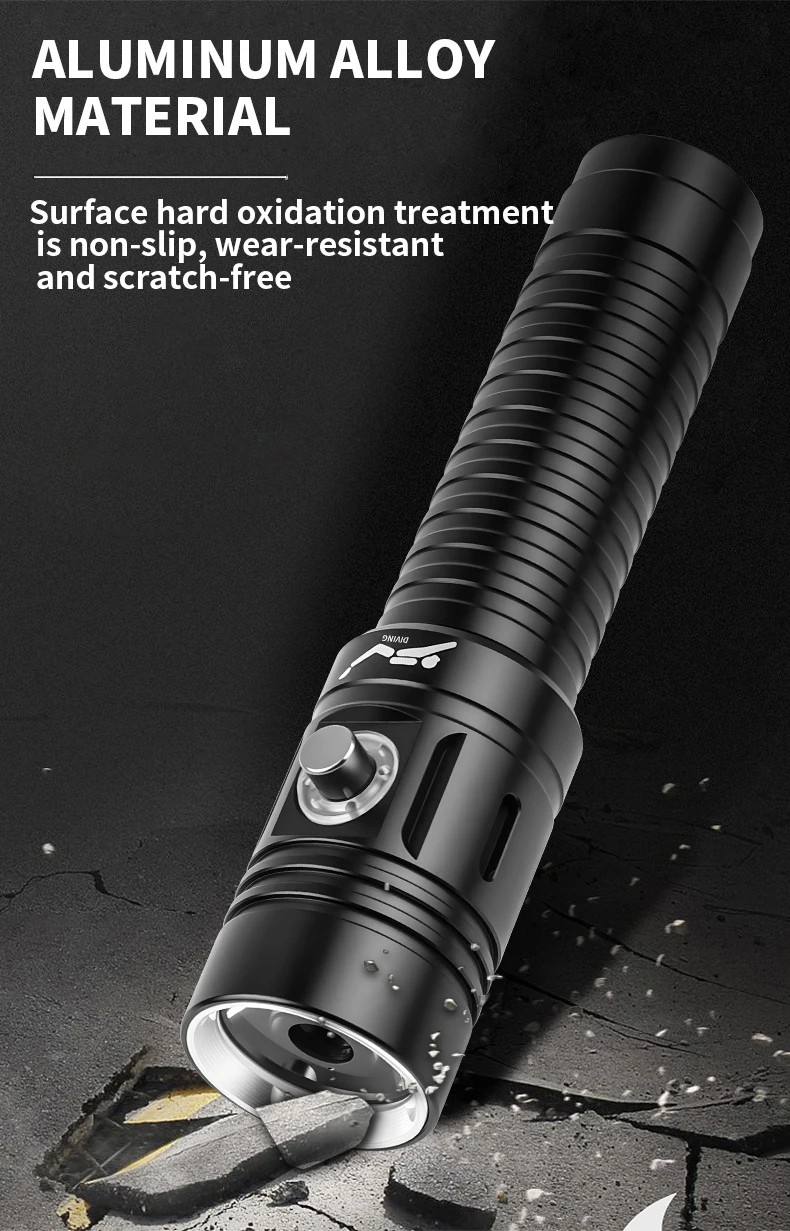 LED Professional Dive Light 100M Depth Scuba Diving Flashlight 18650 Battery Portable Ultra-Bright Flashlight