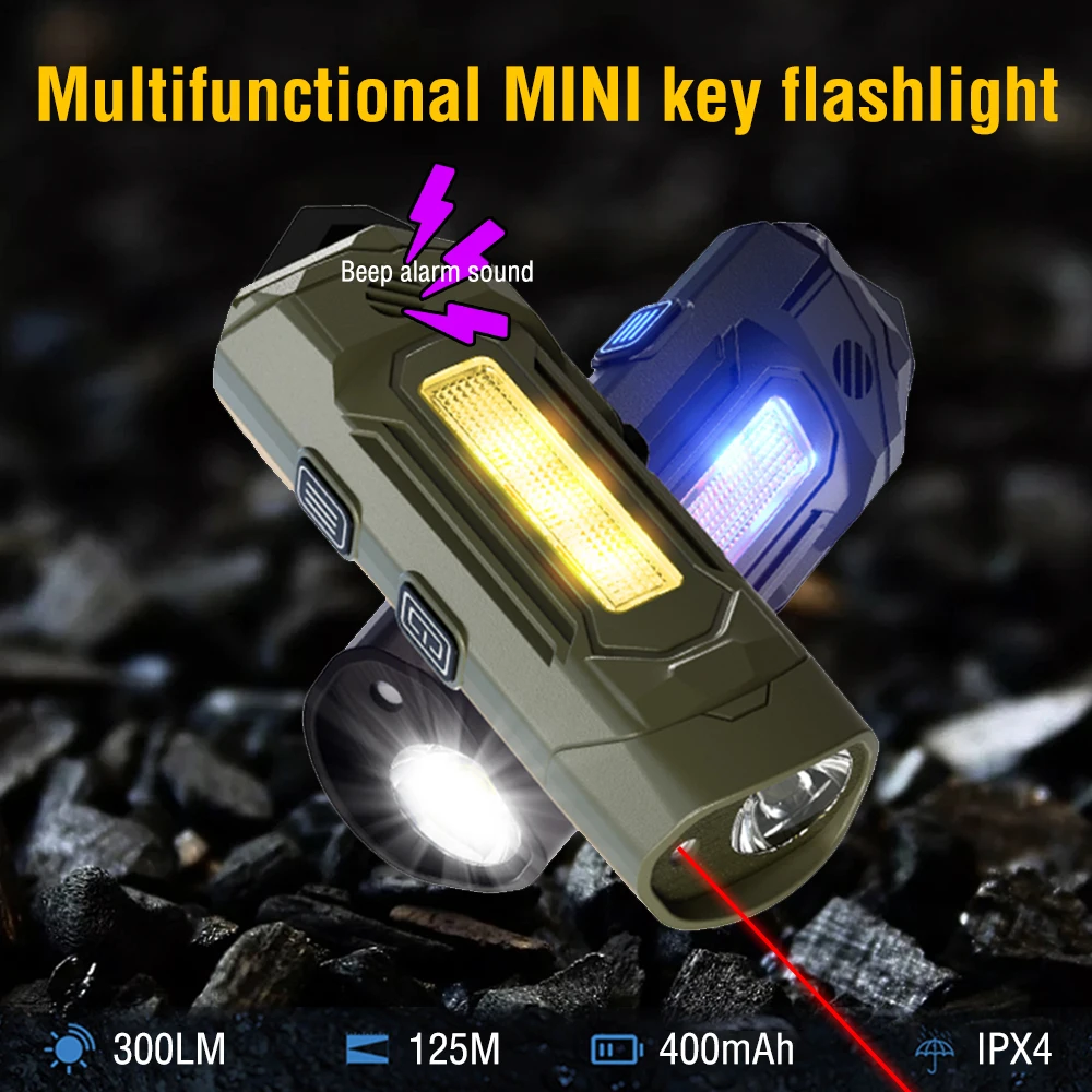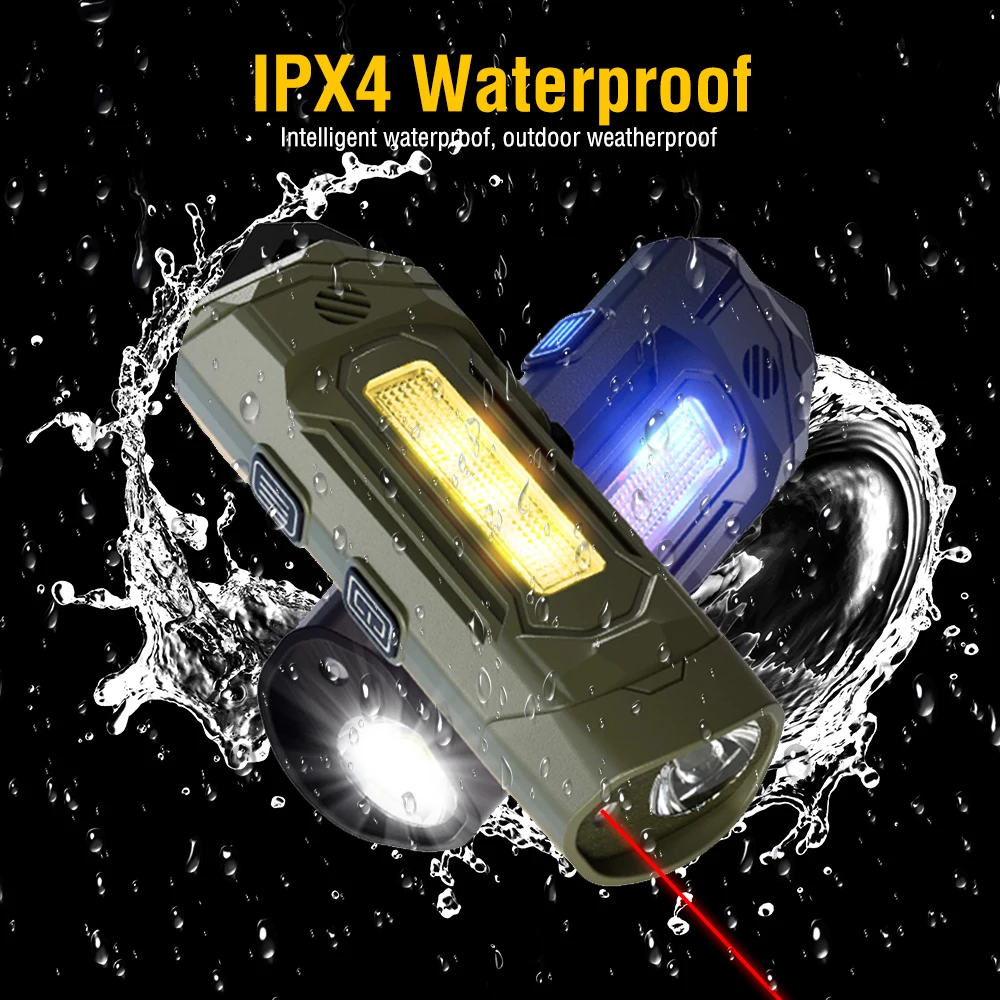 The ZHENAO K220 is a versatile EDC flashlight engineered for everyday carry and tactical applications. Featuring an XTE+ red laser paired with multi-color LED side lighting (purple, yellow, red, and blue), this compact tool delivers exceptional versatility in a lightweight 32.5g design. The main light offers three modes—strong, weak, and flashing—with red laser activation via long press, while intelligent memory function recalls your last setting. Independent side light controls cycle through color options with integrated buzzer activation. Built with durable ABS construction and IPX4 waterproof rating, the K220 withstands demanding conditions. Its 400mAh polymer battery charges fully in 40 minutes via Type-C USB and provides 1.5 to 13 hours of runtime depending on mode selection. Measuring just 8.2×2.8×2.6cm, this professional-grade flashlight combines precision engineering with practical functionality for professionals and enthusiasts alike.