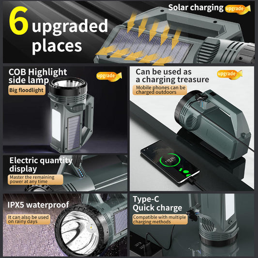Portable USB Rechargeable LED Searchlight Solar Powered Long Range Tactical Torch for Outdoor Use Flashlight Portable Spotlights ST808