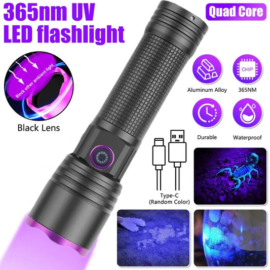 365nm UV Flashlight Type C Rechargeable Filtered LED Ultraviolet Detection Torch Pet Pee Urine, Rocks Gem Money Detector