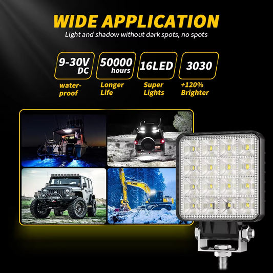 4 Inch 64 LED Square Floodlight 9-80V 24W Car Work Light For Jeep Truck Boat Tractor ATV Offroad 4X4 Barra LED Headlight