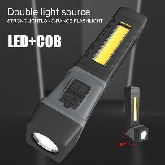 Dual Light Source LED COB Flashlight Super Bright Handfree 90 Degree Rotary Waterproof Magnet Lighting LED Torch For Camping