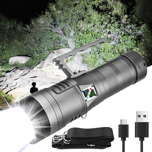 Flashlight Powerful Tactical 30W LED Torch Type C Rechargeable Camping Fishing Hunting Lantern