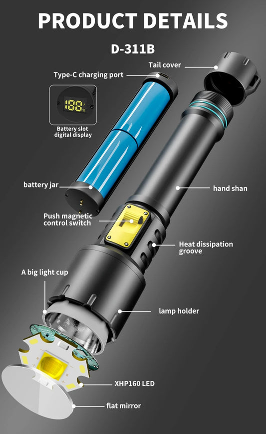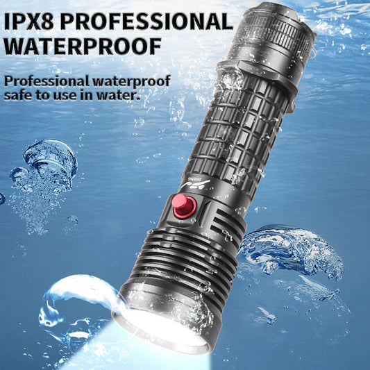 New XHP70 Diving Flashlight IPX8 Waterproof Digital Charging Case Dual-Use Underwater Land High-Intensity Flashlight
