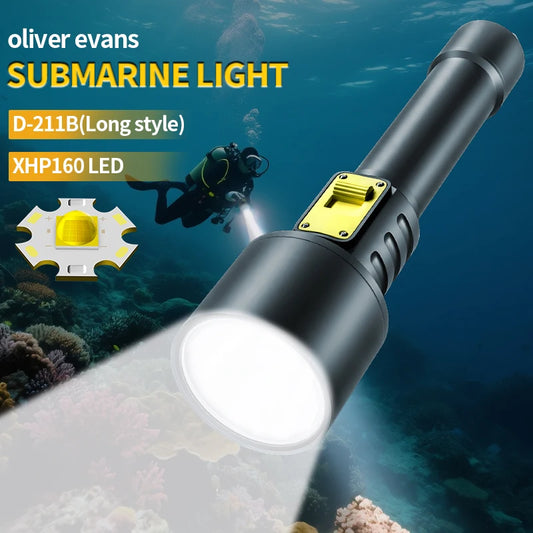 Upgrade XHP160 Diving Flashlight Powerful Profession Underwater Lantern Rechargeable Dive Torch IP8 Waterproof Scuba Lamp