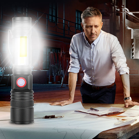 LED Flashlight Waterproof Flashlight Magnetic Torch Zoom XHP50+COB Flashlight With A Clip Portable Hand Light 18650 Battery