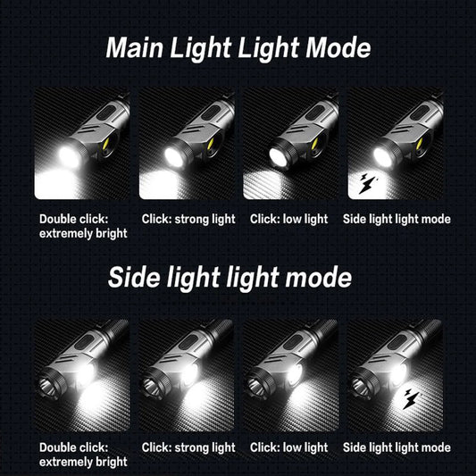 Mini Headlight Flashlight 6-In-1 Induction Dimming 400 Lumens Main Side Light+RGB 12 Mode Ipx4 Waterproof Type-C Charging