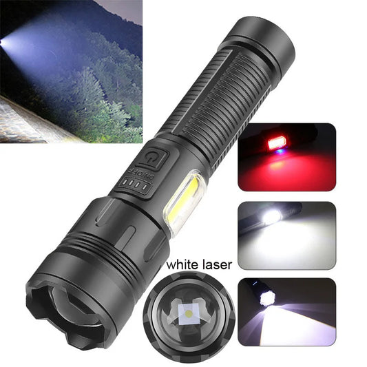 Powerful 3000 Meters LED Flashlight With Side Light 7 Modes USB Rechargeable With 300W Tactical Lantern Camping Lanter