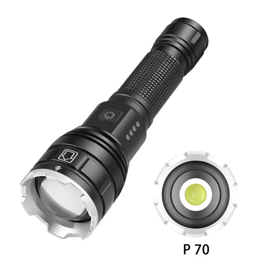High Power XHP70 Led Flashlight 18650 21700 New Type-C USB Rechargeable Torch Powerful Black Outdoor Light Zoom 1500LM Lights