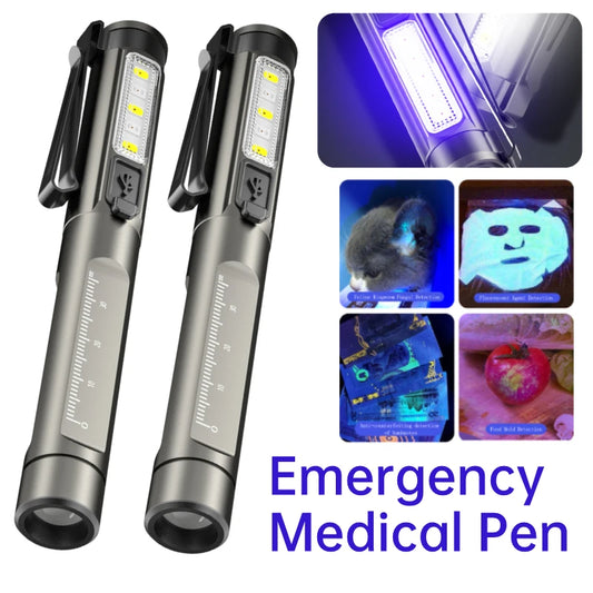 Mini Led Flashlight USB Charging Torch Portable First Aid Clip Pen Light Yellow+White+UV Doctor Nurse Diagnosis Inspection Lamp