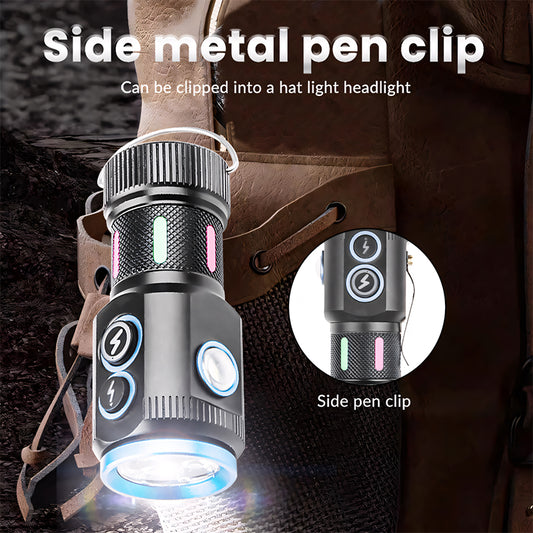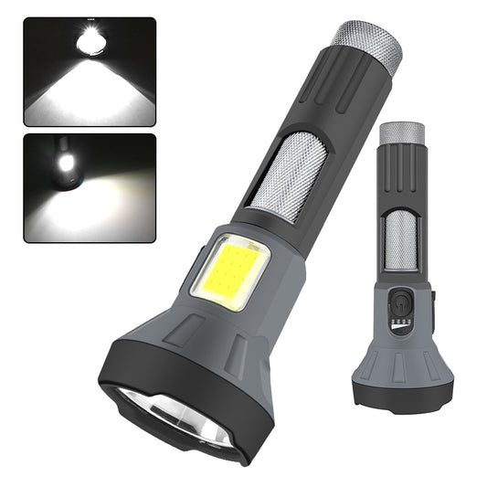 High Power Rechargeable Led Flashlight Work Camping Torch With Cob Side Light Lightweight Outdoor Lighting ABS Material