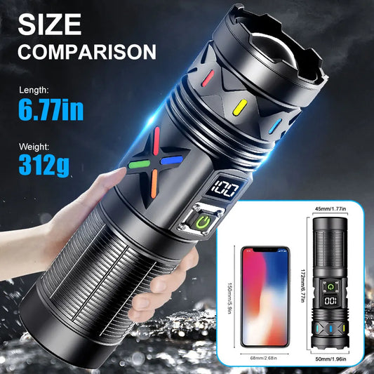 High Power Rechargeable LED Tactical Flashlight 6600MAH Aluminum Alloy Telescopic Zoom Torch Lamp for Outdoor Camping Fishing