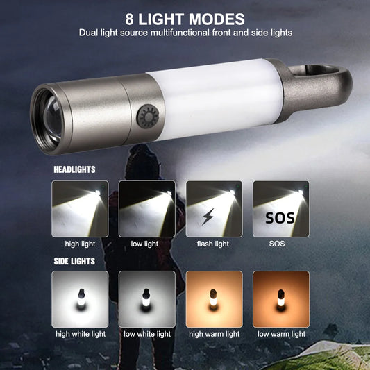 High Bright LED Flashlight Rechargeable Telescopic Portable Lamp Outdoor Camping COB Side Light with 3 Color Lens and Magnetic