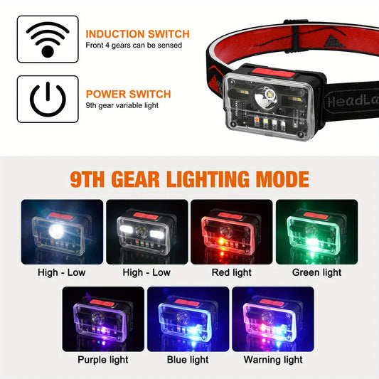 Outdoor Night Fishing Head Flashlight Headlight COB Strong Magnetic Working Headlamp Led Strong Wave Induction Headlight