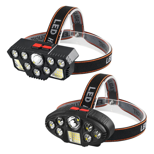 2*led+4*XPE+2*COB Headlamp 8 Lighting Modes Headlight by 18650 Battery LED Flashlight Hunting USB Rechargeable