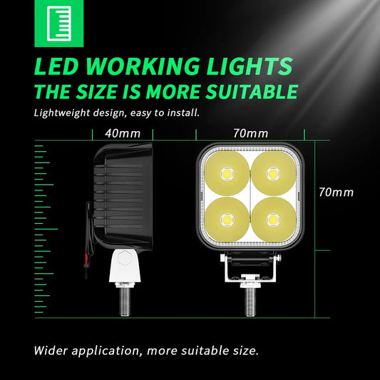 High-Power Light LED Car Vehicle Work Light Headlight 48W 16 LEDs Motorcycle Lighting Inspection Off-Road Spotlight Accessories