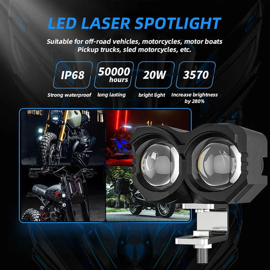 Motorcycle LED Headlight Motorcycle Accessories Fog Light Spotlights Mini Projector Driving Lamp ATV Scooter Lens Dual Color 12V