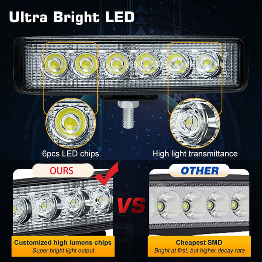 6 LED Work Light Strip Shape Light Bar Spotlight Daytime Running Light 6000K Flood Spot White Off Road For Jeep 4x4 ATV 4WD SUV