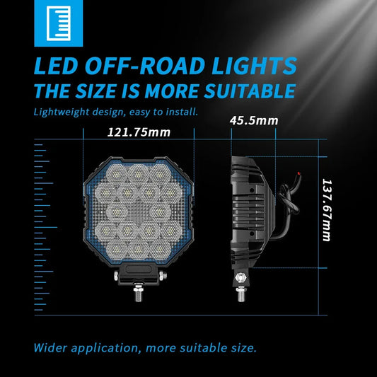 New 5x5 "square work light 45W 16LED floodlight auxiliary light Off-road vehicle modified spotlights