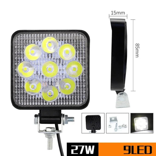 Automotive LED work light mini square 9-light 27W auxiliary light off-road modification headlight spotlight headlight