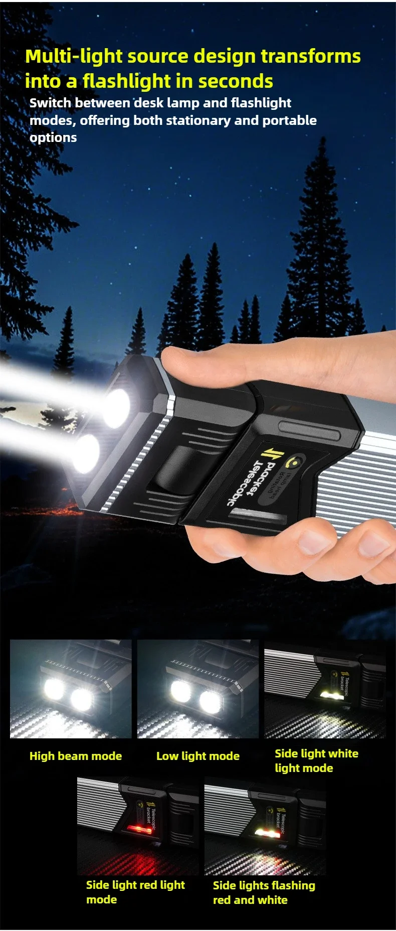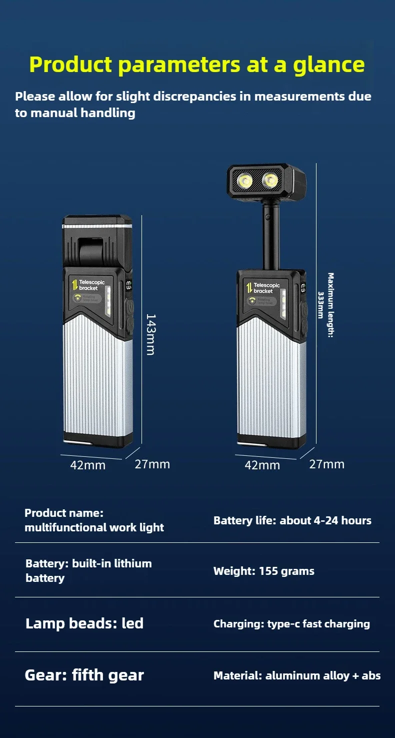 Outdoor Multi-Form Transformable Charging LED Light 180° Rotatable Stretchable Handheld Tent Magnetic Work Illumination