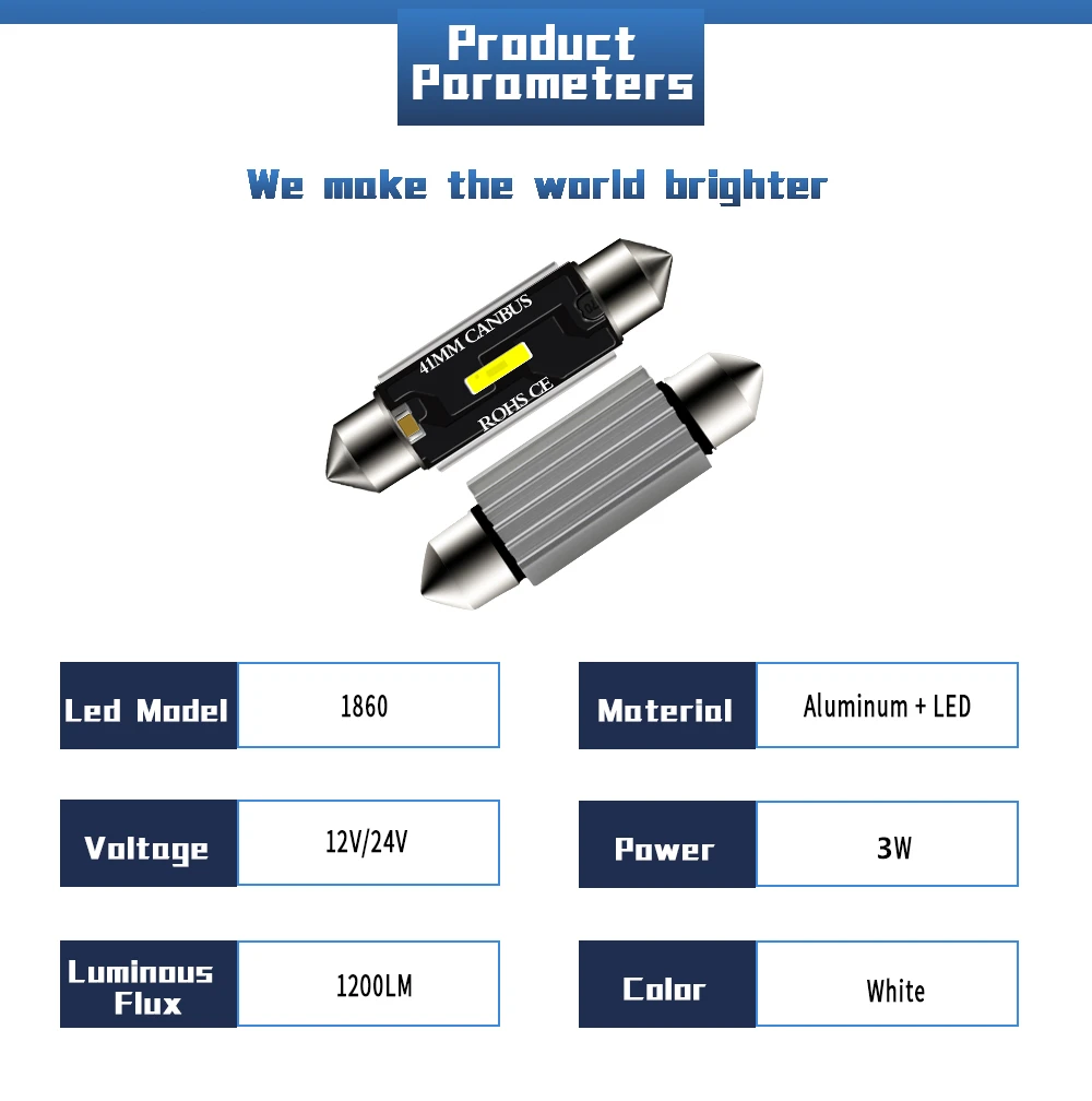 C5W C10W LED Bulbs Canbus Festoon-31MM 36MM 39MM 41MM CSP 1860 NO ERROR Car Interior Dome Light Reading Light 12V/24V
