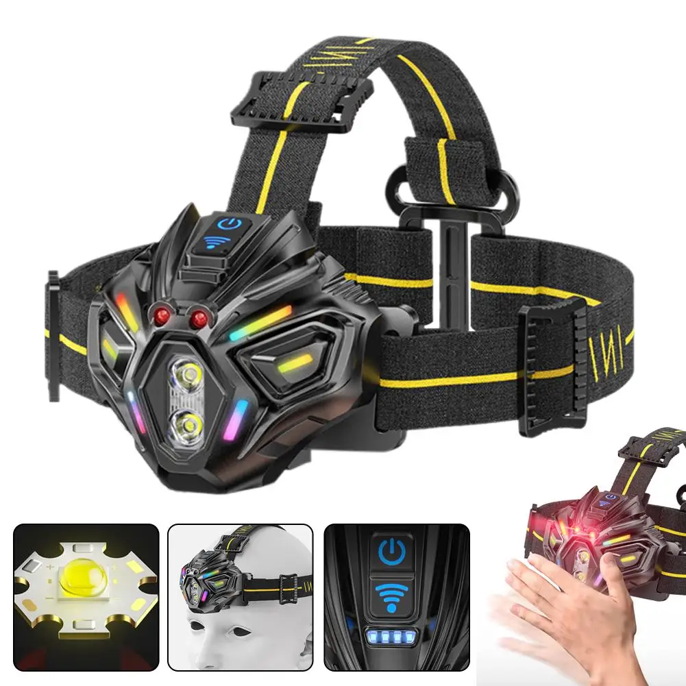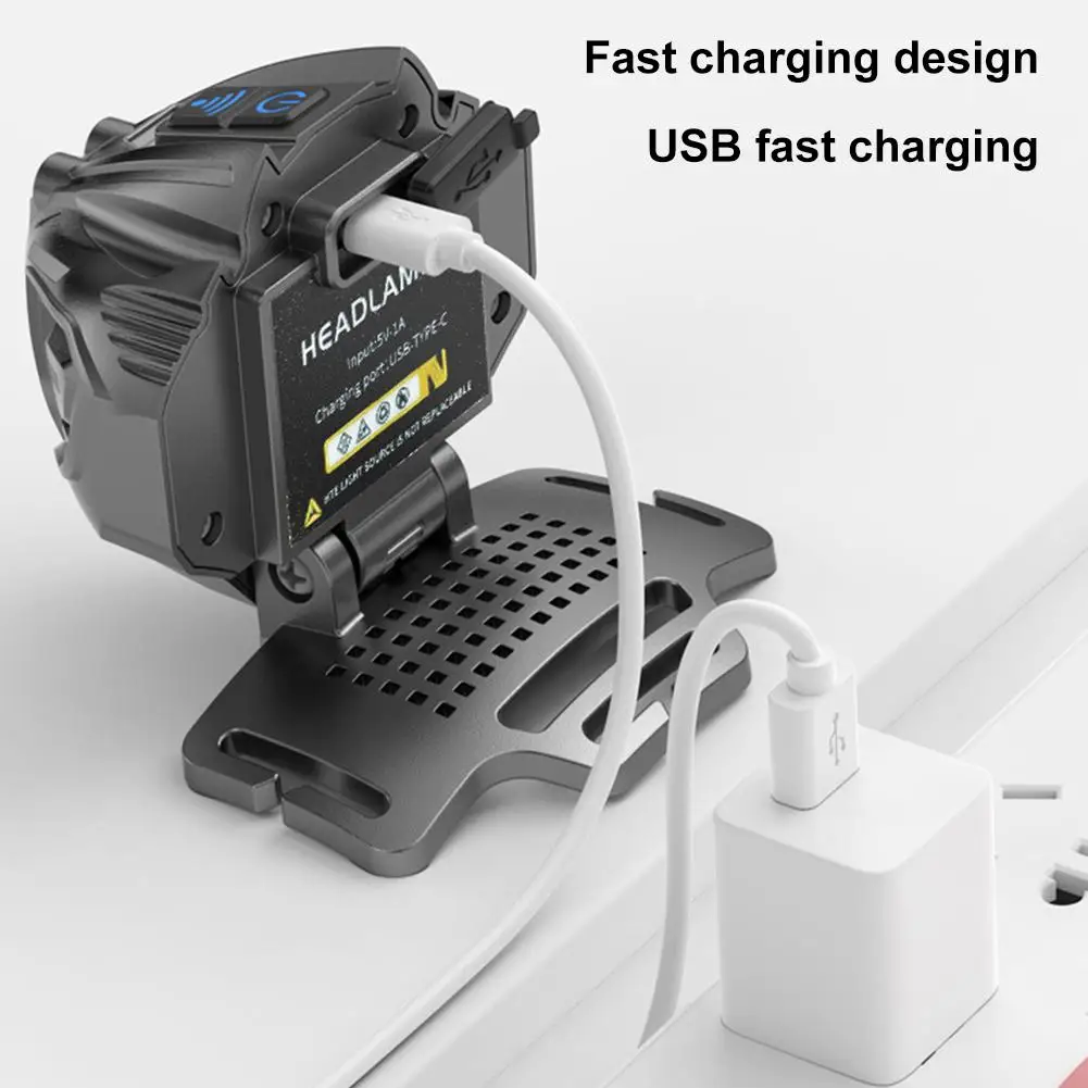 Motion Sensor Headlamp USB Type C Fast Charging 16modes Powerful Headlamp Torch Battery For Outdoor Camping