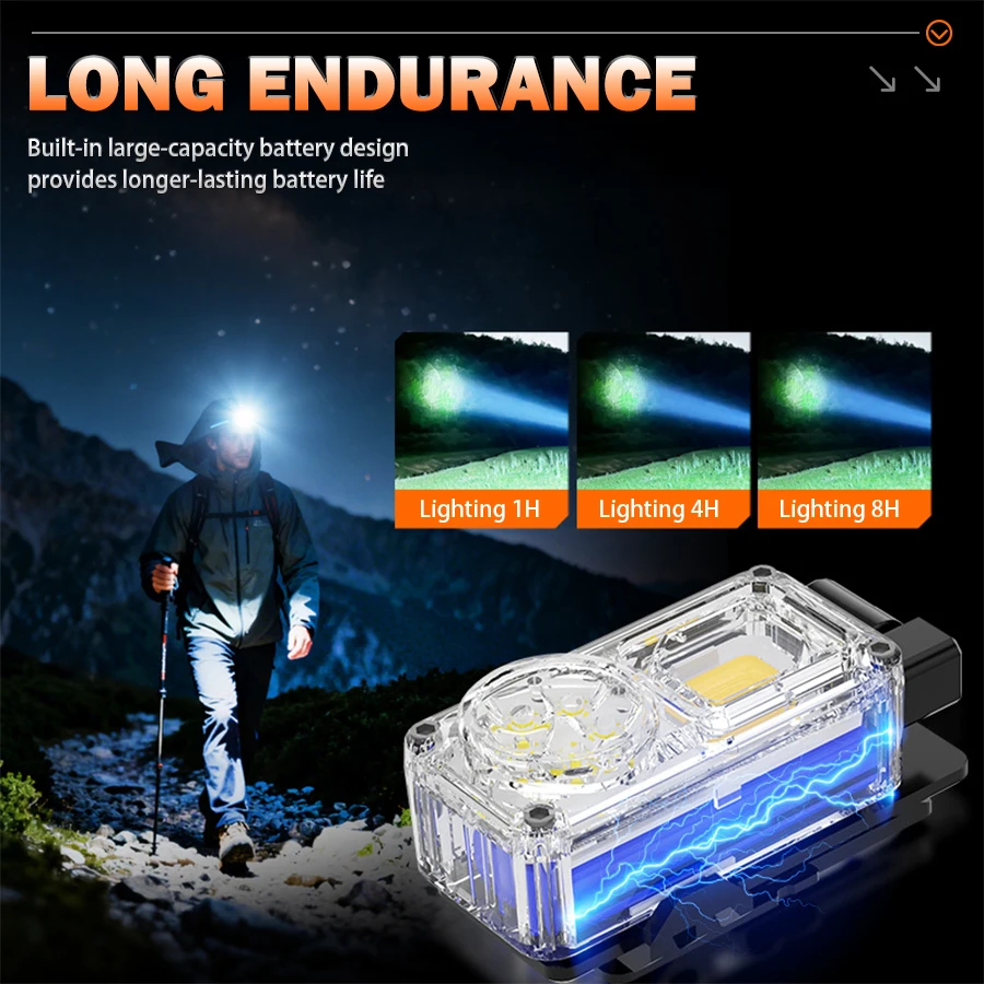 The ZHENAO YH-T05 is a versatile rechargeable headlamp engineered for demanding outdoor and professional applications. Featuring dual LED and COB technology, this 107g headlamp delivers exceptional brightness with 7-speed adjustable illumination to match any task. The IPX6 waterproof rating ensures reliable performance in wet conditions, while the large-capacity lithium battery supports extended use with Type-C fast charging for quick turnarounds. Wave sensing activation provides hands-free operation, and the strong magnetic base enables flexible positioning on metal surfaces. The adjustable back clip and wide-angle design accommodate various mounting preferences. Ideal for fishing, camping, hiking, search and rescue, patrol work, and emergency situations, this headlamp combines durability with practical functionality for professionals and enthusiasts alike.
