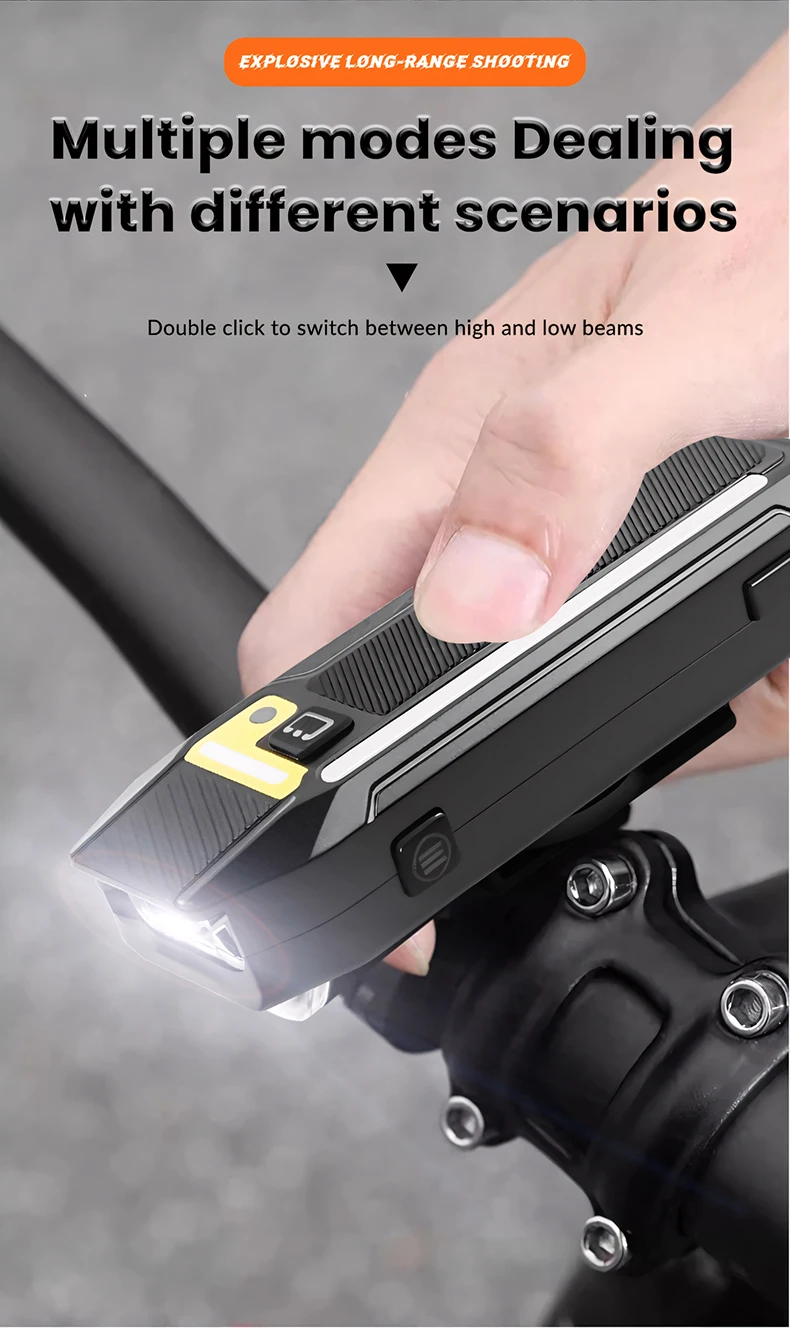 The ZHENAO Q07/Q07L smart bike light combines advanced LED technology with versatile control for enhanced night riding safety. Featuring dual LED bulbs that emit white and yellow light with adjustable RGB side lighting, it adapts to varying visibility conditions. The Q07 offers intuitive double press switches for main and side lights, while the Q07L adds remote control functionality with additional frequency and horn controls. Powered by a built-in 2400mAh lithium battery and rechargeable via USB Type-C, it ensures long-lasting performance. Crafted from durable ABS and PC materials with an IPX4 waterproof rating, this lightweight (86-87g) light is designed to withstand outdoor use while providing customizable illumination modes to suit expert cyclists.
