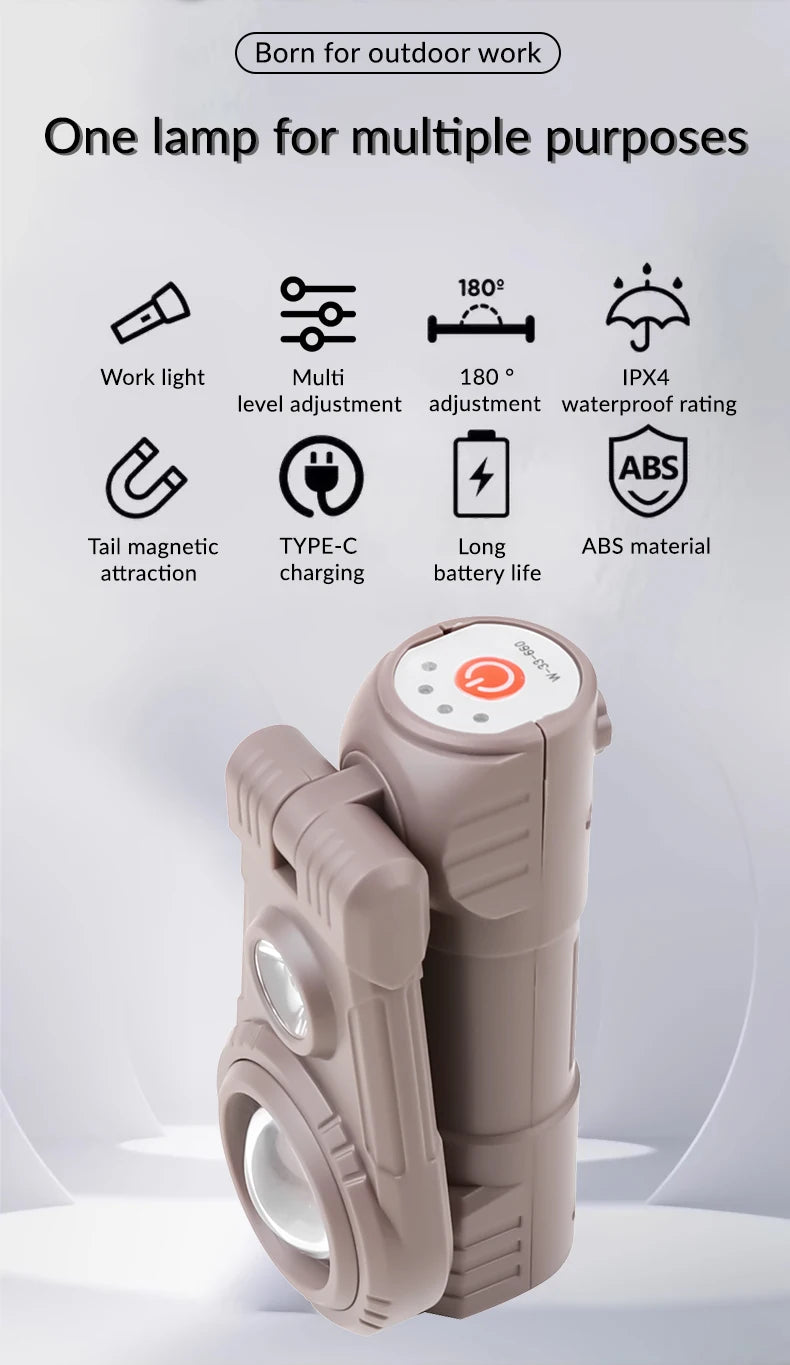 360° Rotating Magnetic LED COB Headlamp, Adjustable Multi-Light Waterproof Work Light, USB Type-C Rechargeable, Outdoor Camping