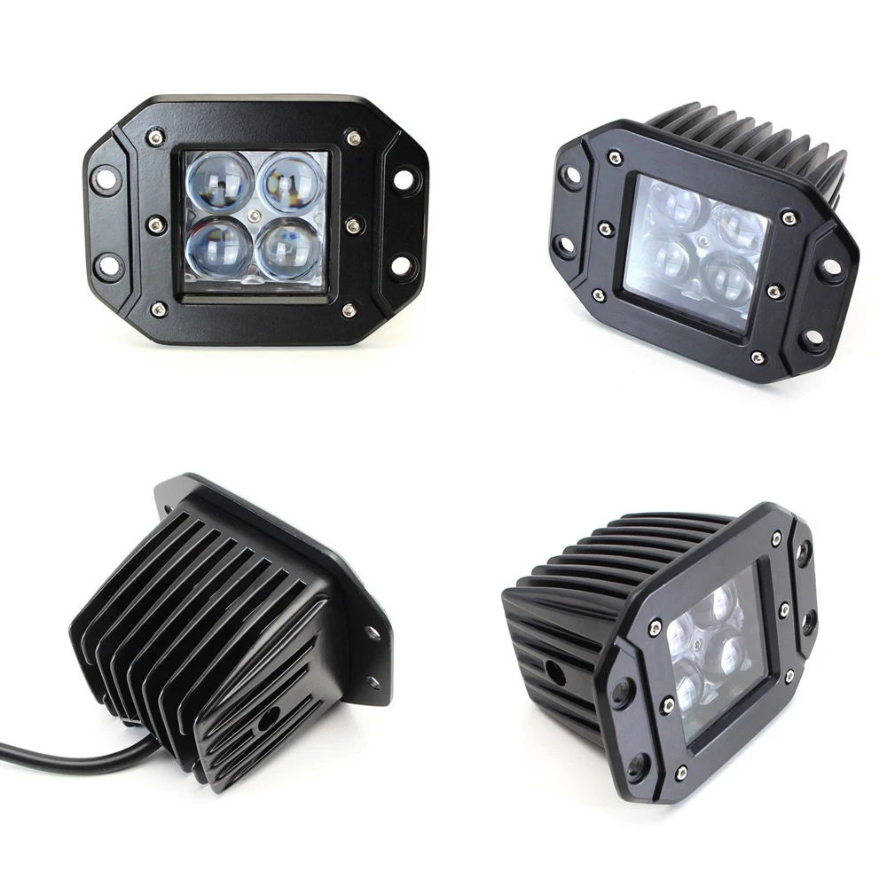 48W 4D Lens 5 inch Flush Mount LED Work Light Pods Amber White Strobeflash Reverse Backup Lamp & Free Wiring Harness Kit