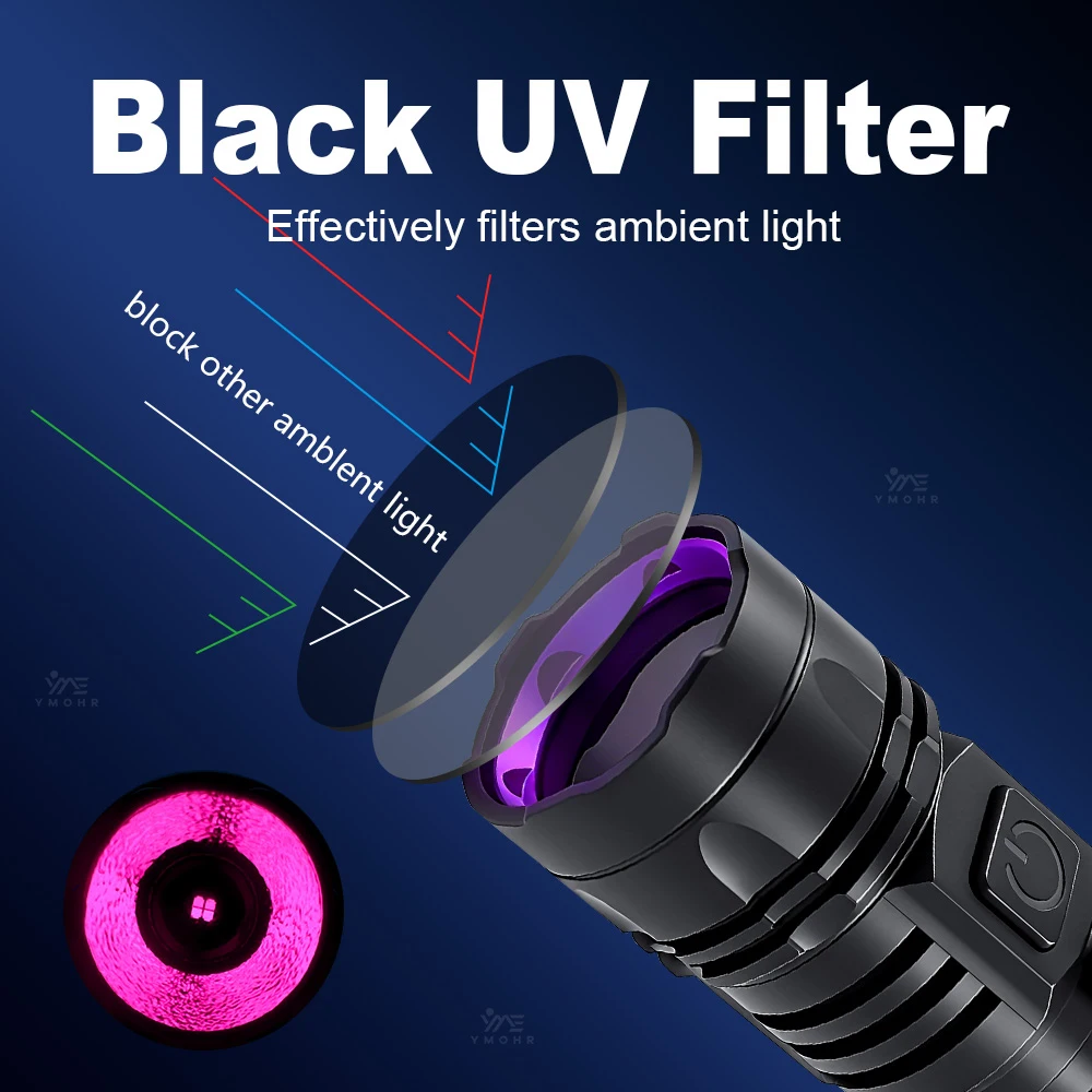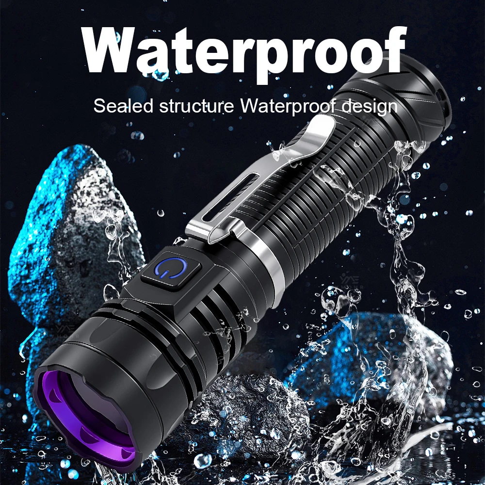 365nm LED UV Flashlight USB Rechargeable UV Light Pet Cat Dog Urine Ringworm DetectionAluminum Alloy Money Jewelry Black Light