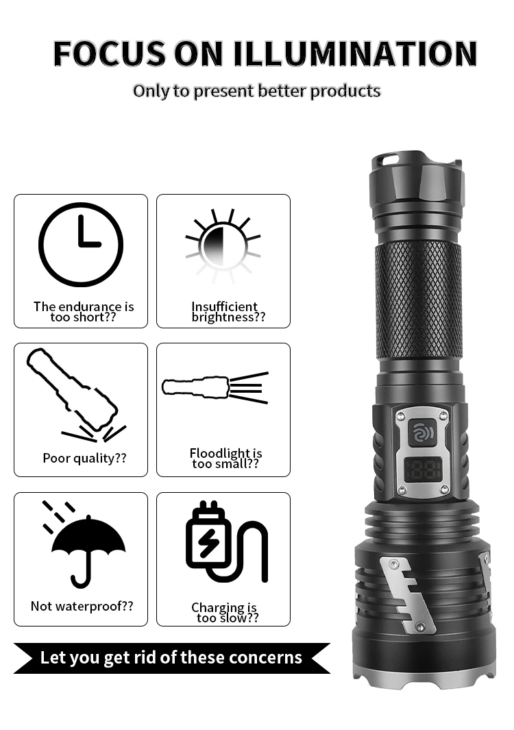 XHP360 Ultra Powerful Flashlight LED Work Light Rechargeable LED Lamp Waterproof Torch Outdoor Lights For Camping