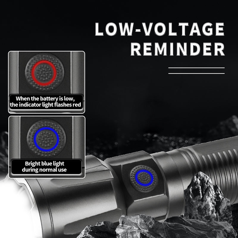 Portable Telescopic Zoom Long range Flashlight Type-c Rechargeable Power Display Torch Waterproof Flashlight with Tail Rope