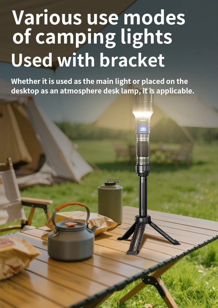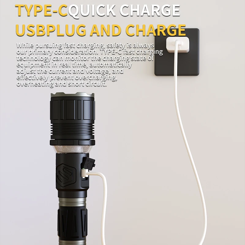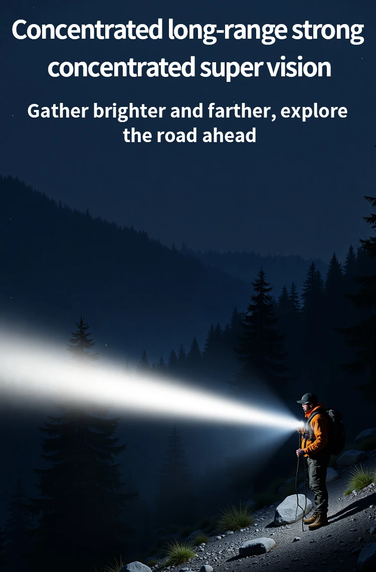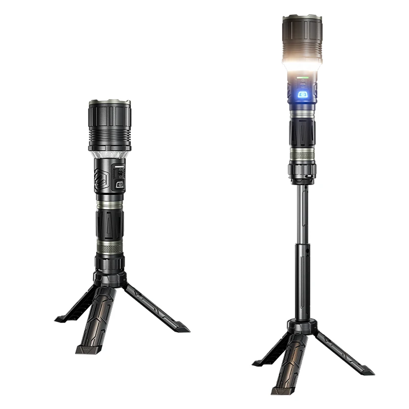 50W white laser flashlight that is extremely bright and has long-range capabilities. The lotus-shaped head can break windows