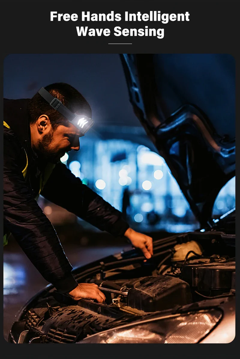 Ultra Bright XPE+COB LED Sensor Headlamp Type-C Fast Charging Headlight Outdoor Portable Waterproof Camping Fishing Headlight
