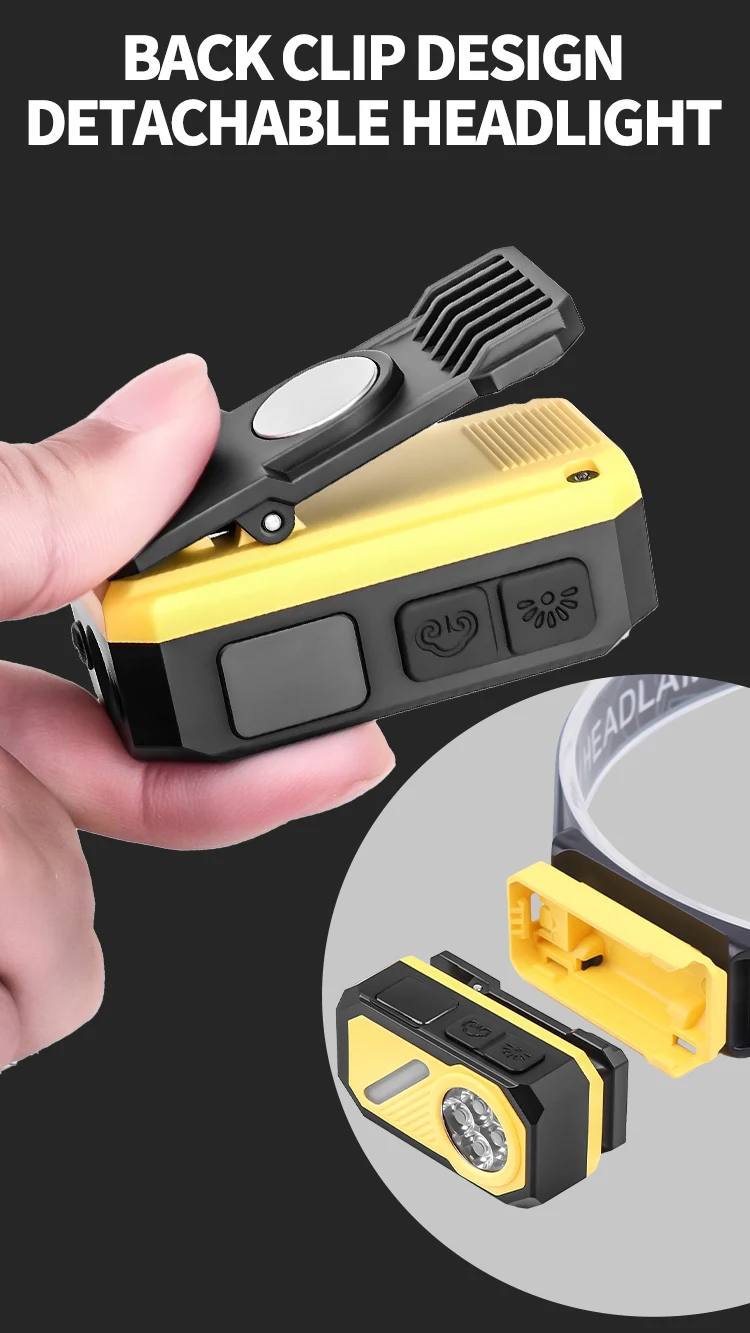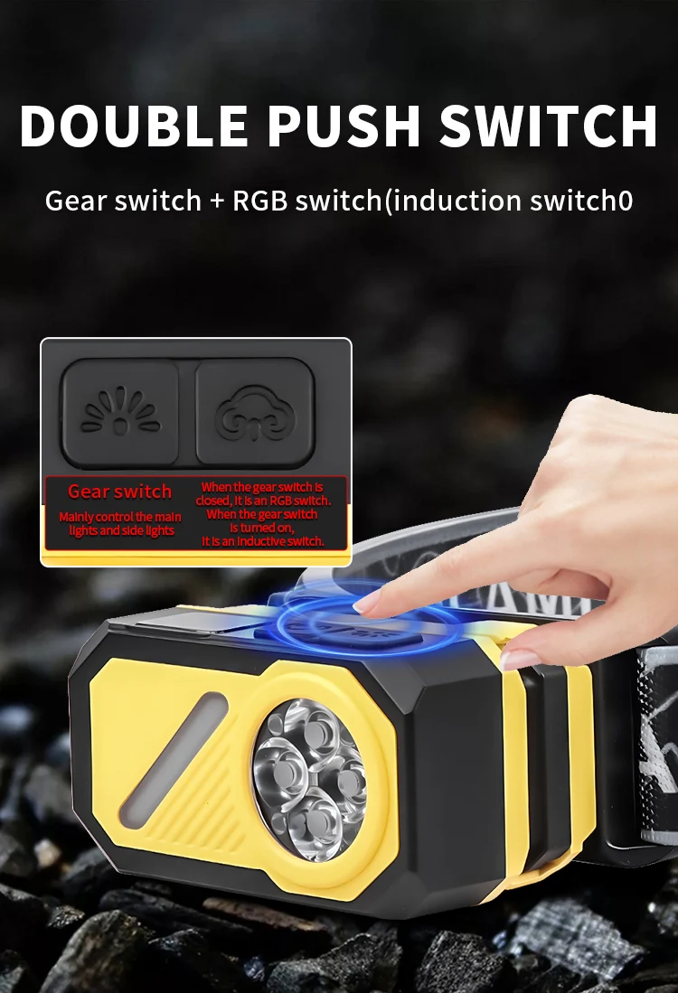 Mini Headlight Flashlight 6-In-1 Induction Dimming 400 Lumens Main Side Light+RGB 12 Mode Ipx4 Waterproof Type-C Charging